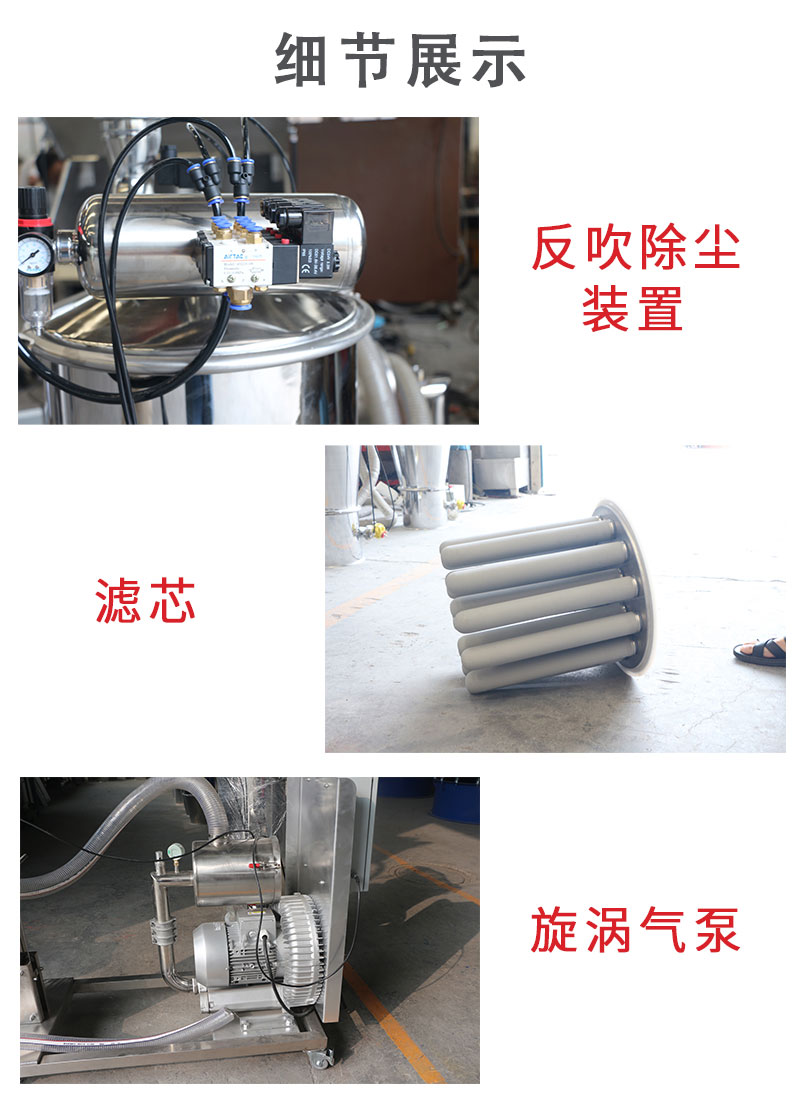 【產(chǎn)品簡述】:真空上料機是一種密封無粉塵遺漏的負壓抽真空上料設備,與混合機,反應釜,振動篩等配套使用...