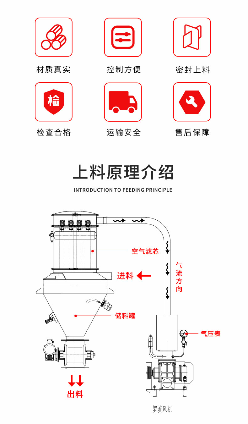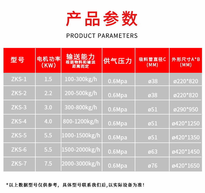 【物料要求】:粉末,顆粒類(lèi)物料均可以輸送,一般粒度在400目-3cm之間為宜